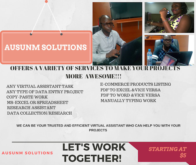 I can be your trusted and efficient virtual assistant who can help you with your projects. I am a quick learner and a diligent worker. Willing and ready to take on your most remedial of tasks to your most complex and time-consuming projects. Let me shave hours off of your workweek. Whether it is business or personal, I am here to help you.