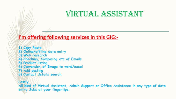 Whether it is business or personal, I am here to help you with the following services:-
