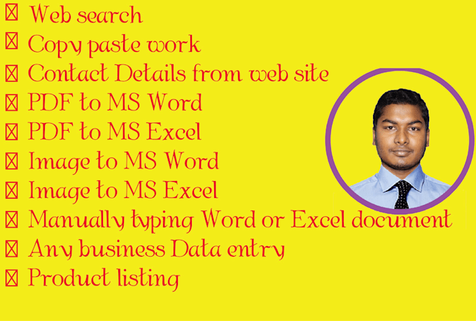 js-gig-main-desc ">I have excellent experience in data entry, administrative and accounts related works.I can assist you the following all kinds of works :